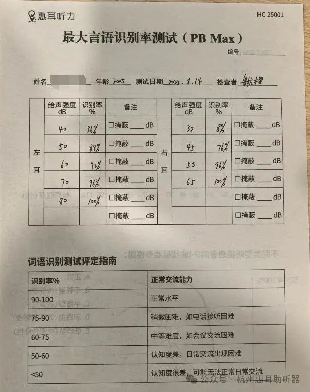 看到小郑纯音测听报告后,史主任要求进行PB max测试,排除听神经病常表现的上坡型听力的可能性,