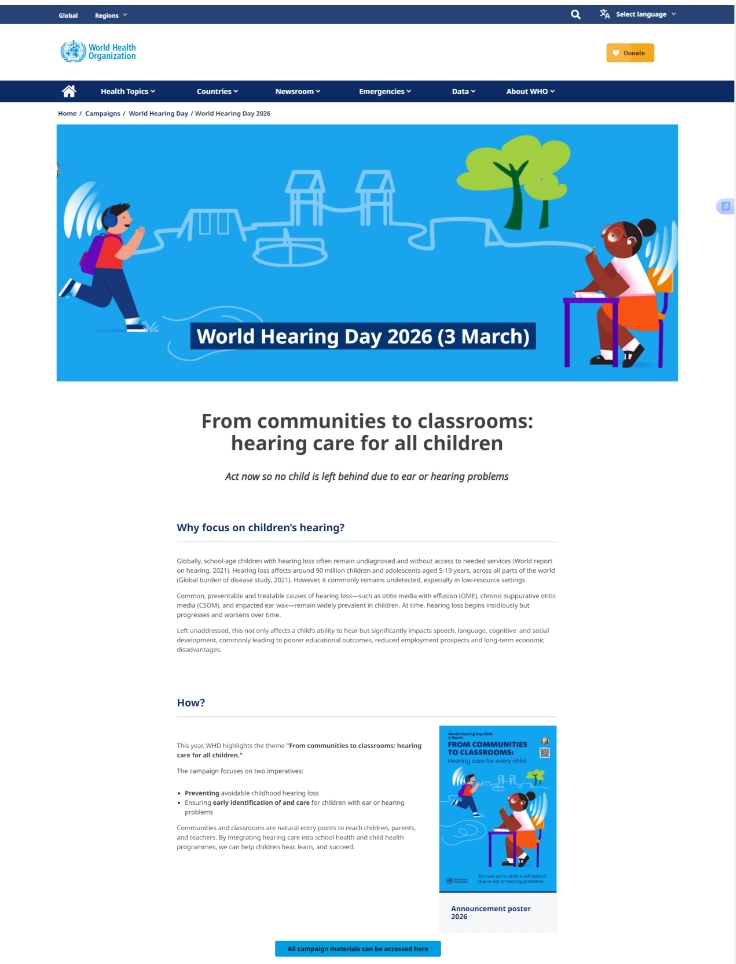 2026世界听力日主题发布——从社区到课堂:惠及所有儿童的听力保健!