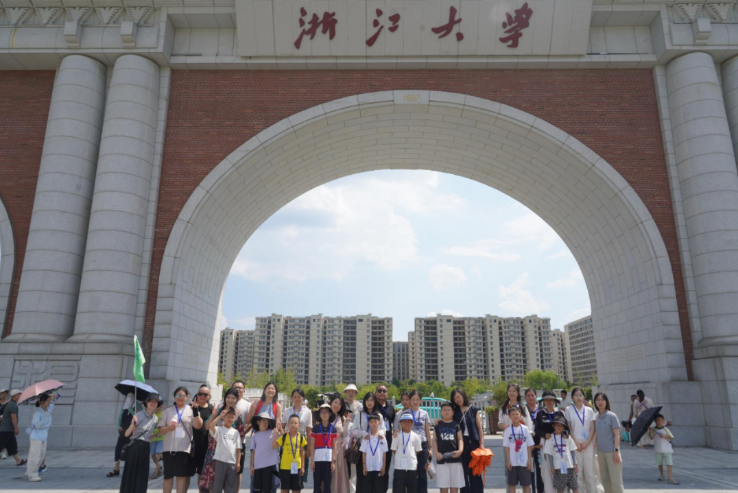 午后,孩子们的脚步迈向了美丽的浙大校园。校门口的打卡定格下一张张灿烂的笑脸,机械工程学院刘齐博士带领大家参观的“国重展厅”,更是让孩子们沉浸式感受了浙大深厚的文化底蕴与辉煌校史!