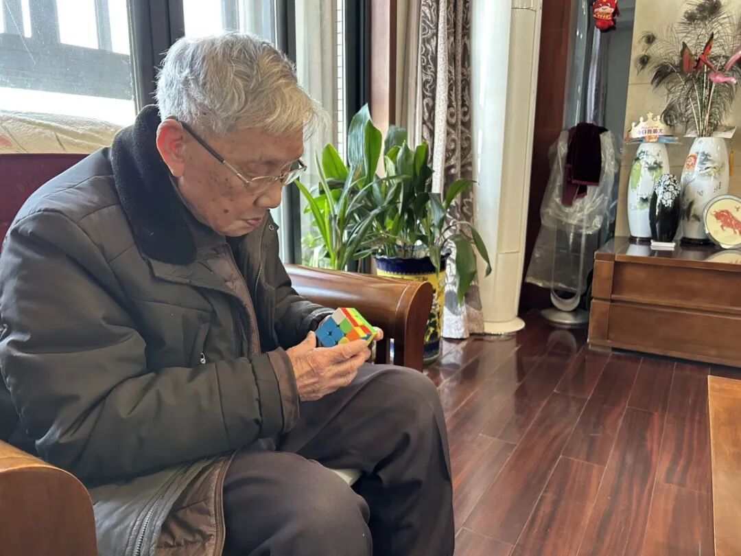 退休后的胡教授生活丰富多彩。为了防止老年痴呆,96岁高龄的他还会自己出数学题并认真解答,沉浸在数学的海洋里,享受思考的乐趣。近期他还专注魔方,那些被打乱的方块在他手中仿佛有了生命,不一会儿就被还原整齐有序。